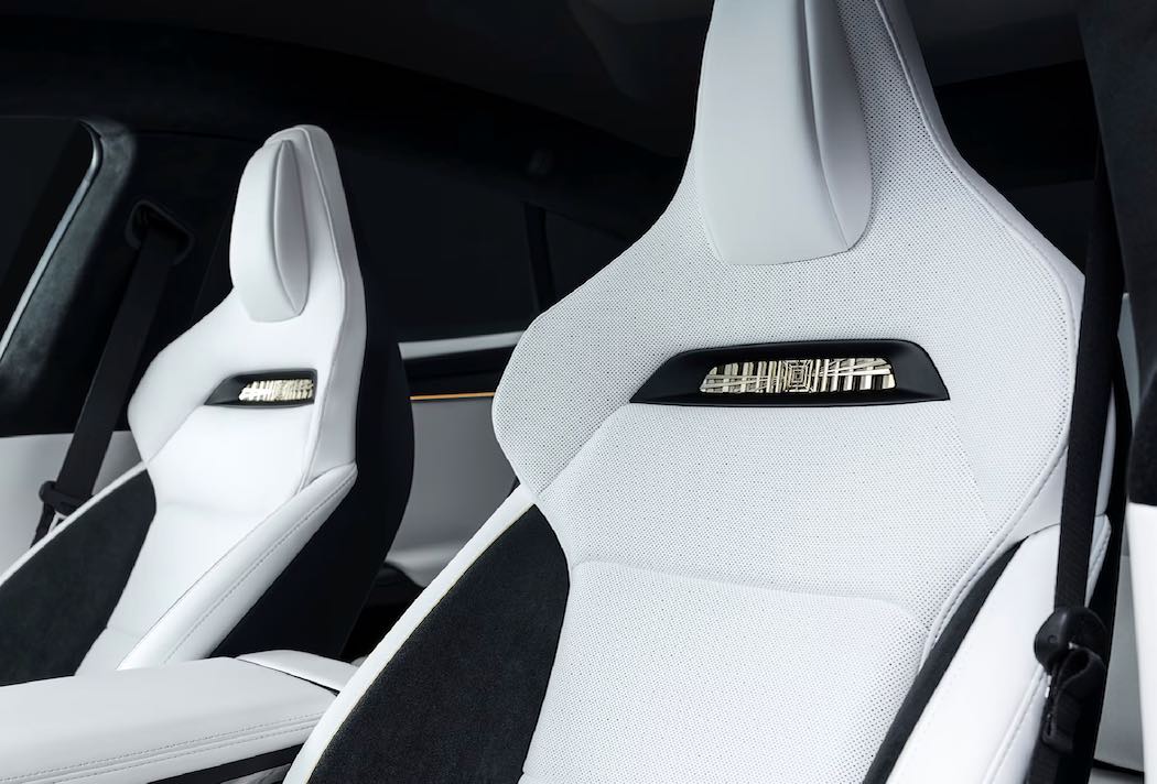 内装はホワイトプレミアムインテリア(アルカンターラスポーツシート仕様)にゴールドパイピングとゴールドのプレイドシートバッジが施されます。ダッシュボードには個体番号入りのシグネチャーバッジ(例:1/250、1/100)が設けられ、シグネチャー専用のドアシル、ゴールドのプレイドパドルランプ、専用の室内照明シーケンスも装備されます。ステアリングはヨーク型です。