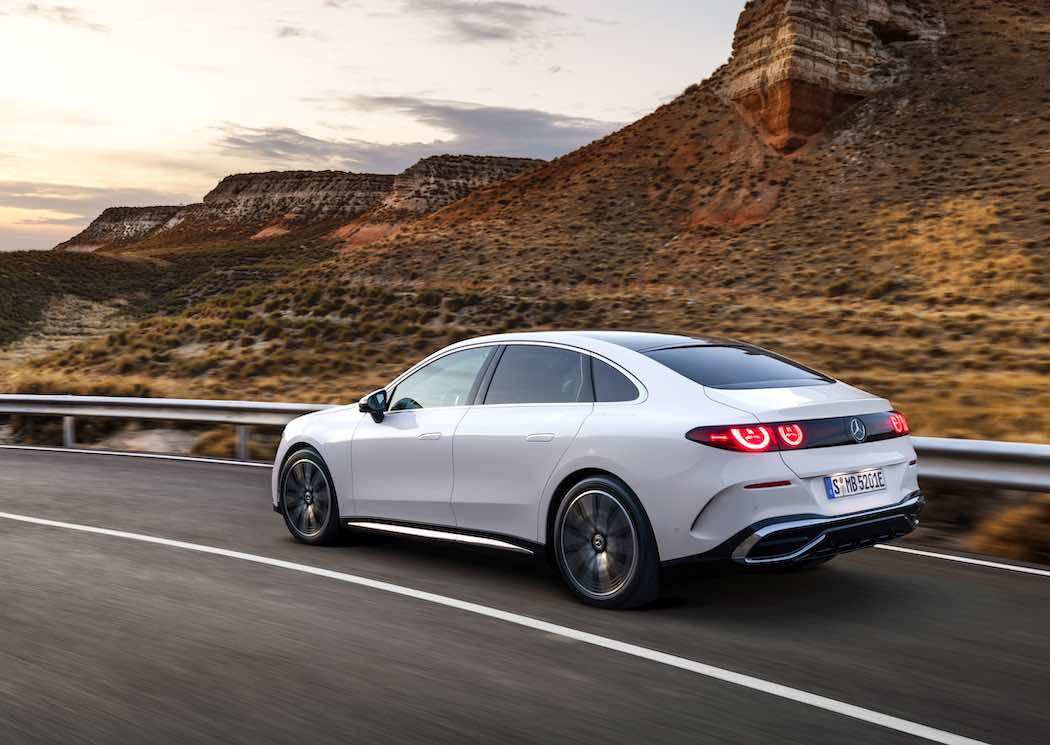 パワートレインは、リアアクスルに永久磁石同期モーター(PSM)を搭載し、2速トランスミッションを組み合わせる構成です。1速はギア比11:1、2速は5:1で、走行状況に応じて自動的に変速します。フロントアクスルにはディスコネクトユニット(DCU)付きの電気モーターを搭載し、必要時のみ駆動力を加える4MATICシステムを採用。低負荷時にはモーターをほぼ瞬時に切り離すことで、フロントアクスルの損失を最大90%低減するとしています。